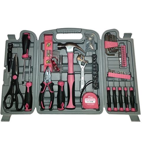 RT TOOL Set di strumenti fai-da-te 56 pezzi rosa casa e Garage riparazioni facili con custodia per attrezzi manuali per uso domestico
